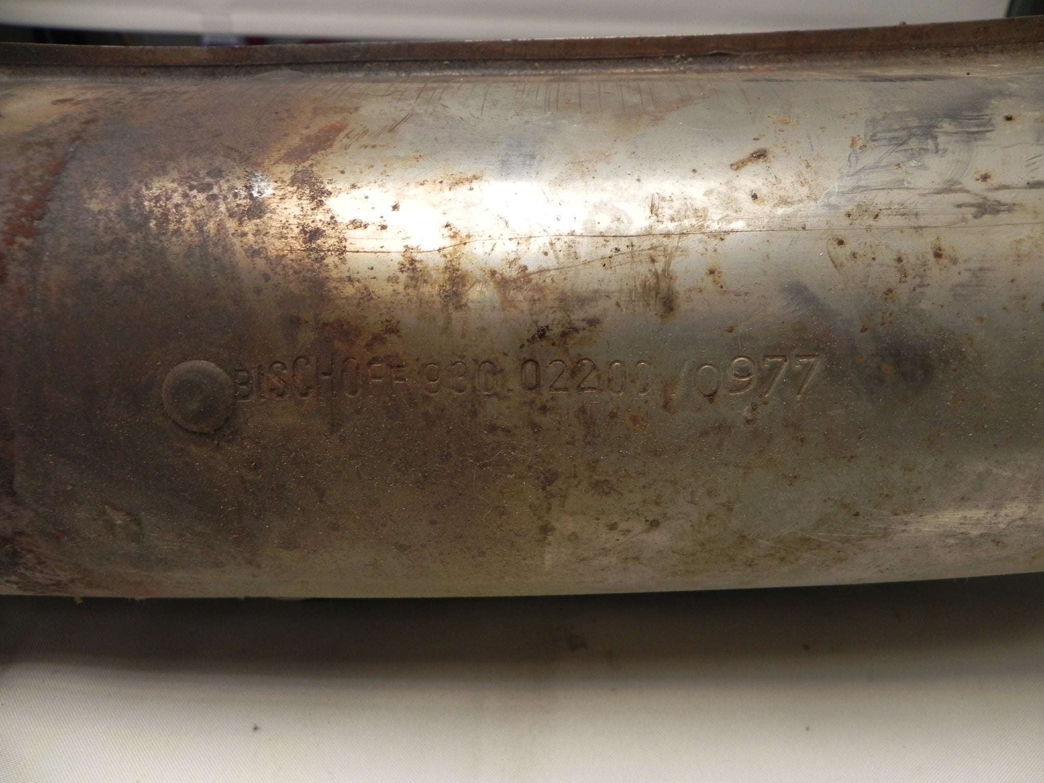 Used Bischoff muffler. Date stamped 09/77. 63mm inlet 55mm outlet
