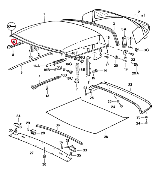 New genuine Porsche Cabriolet convertible top gasket front.
