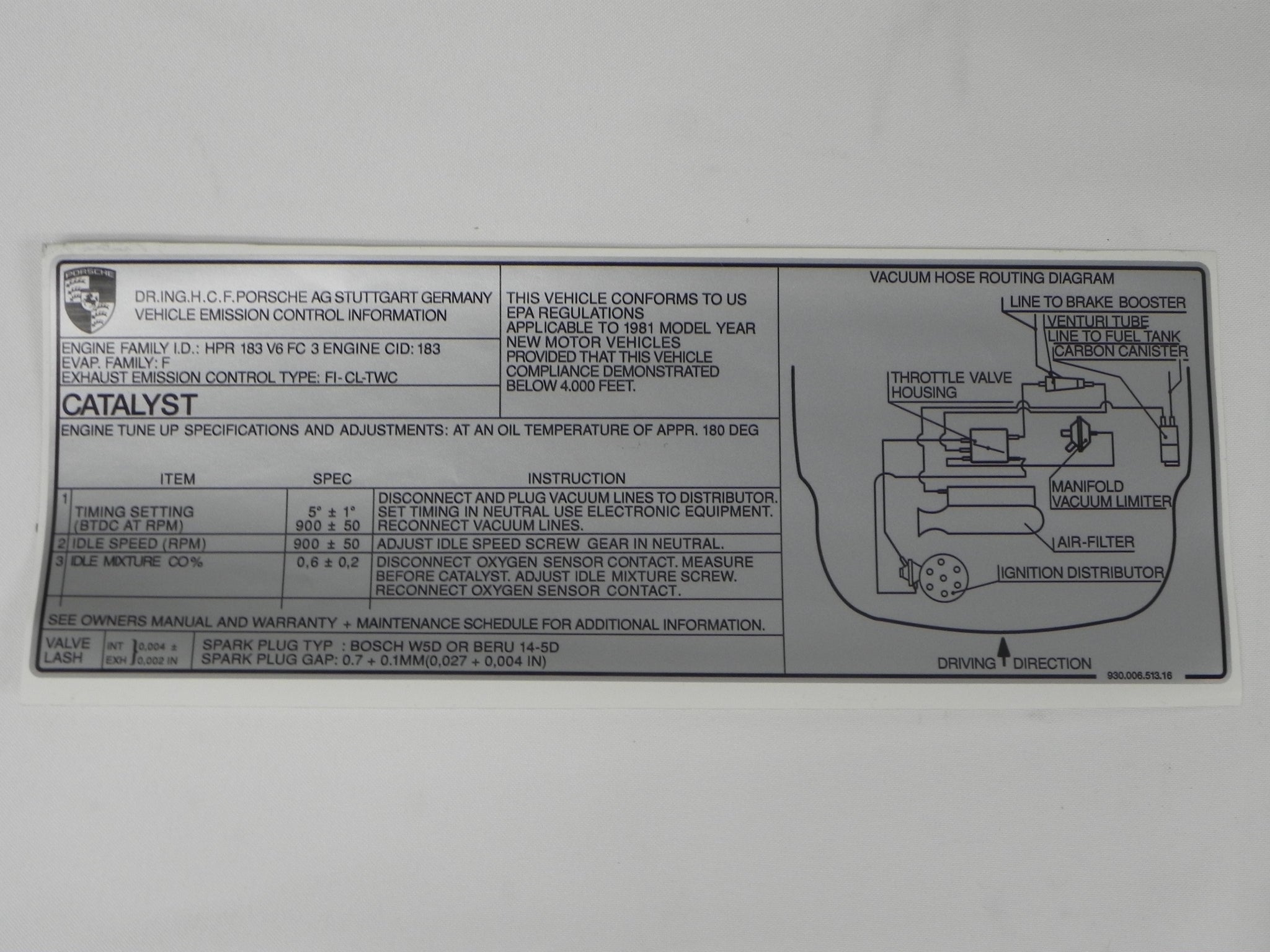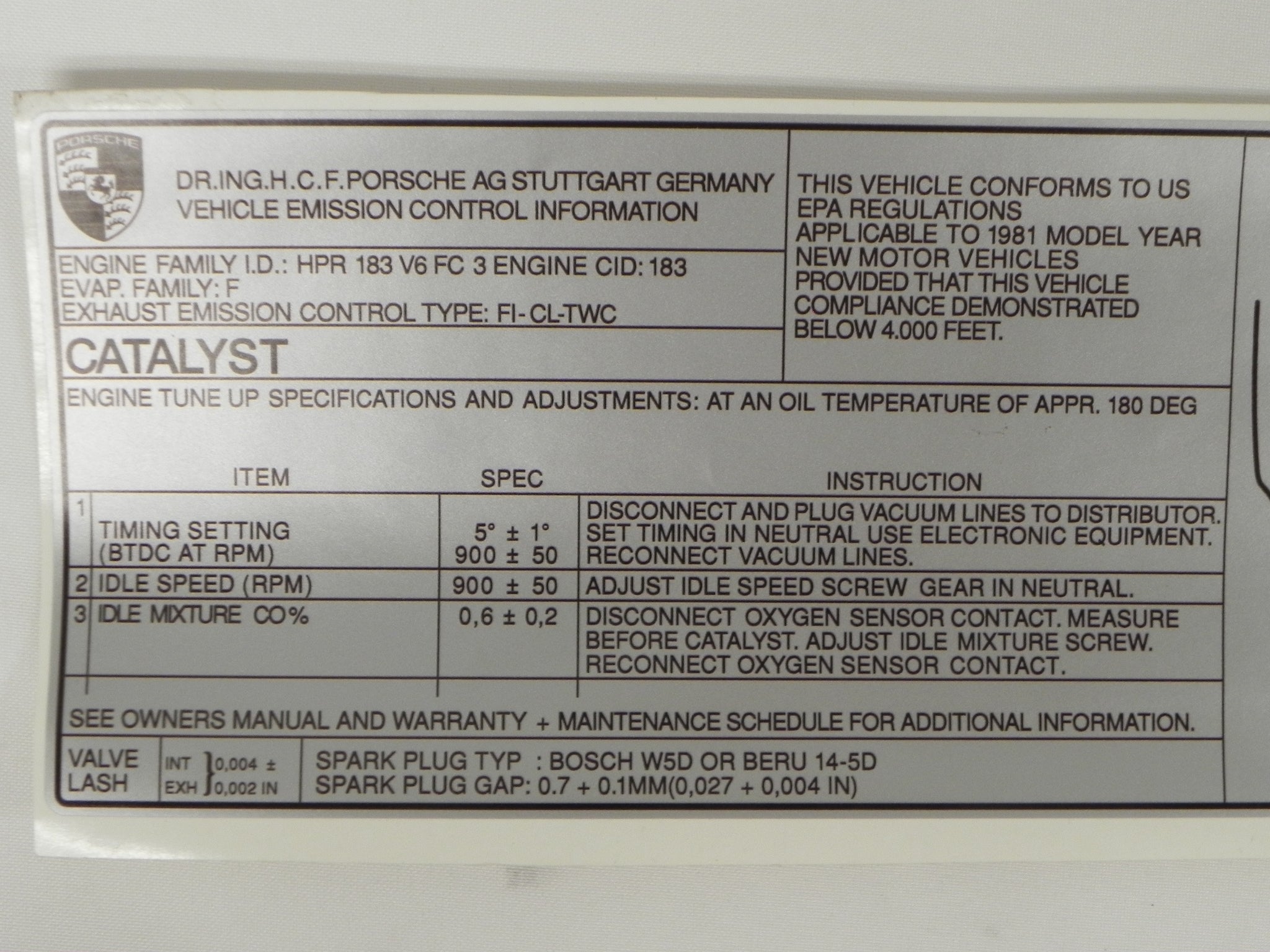New catalyst decal. Emissions decal inner engine lid.